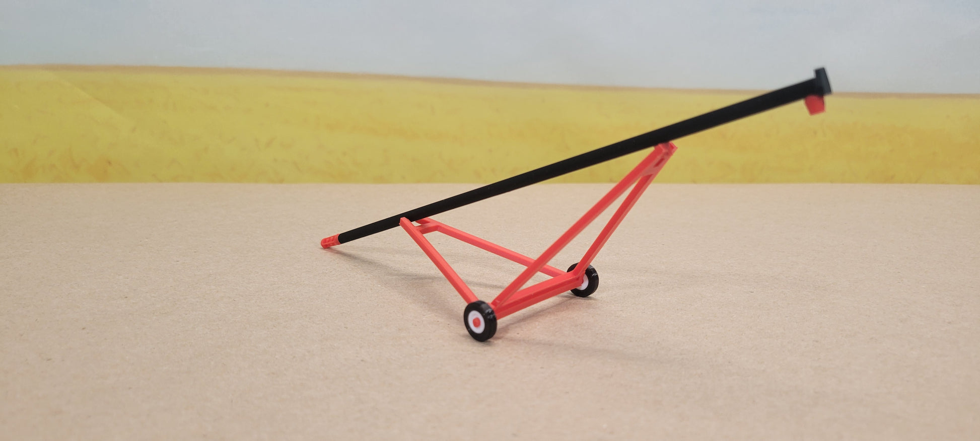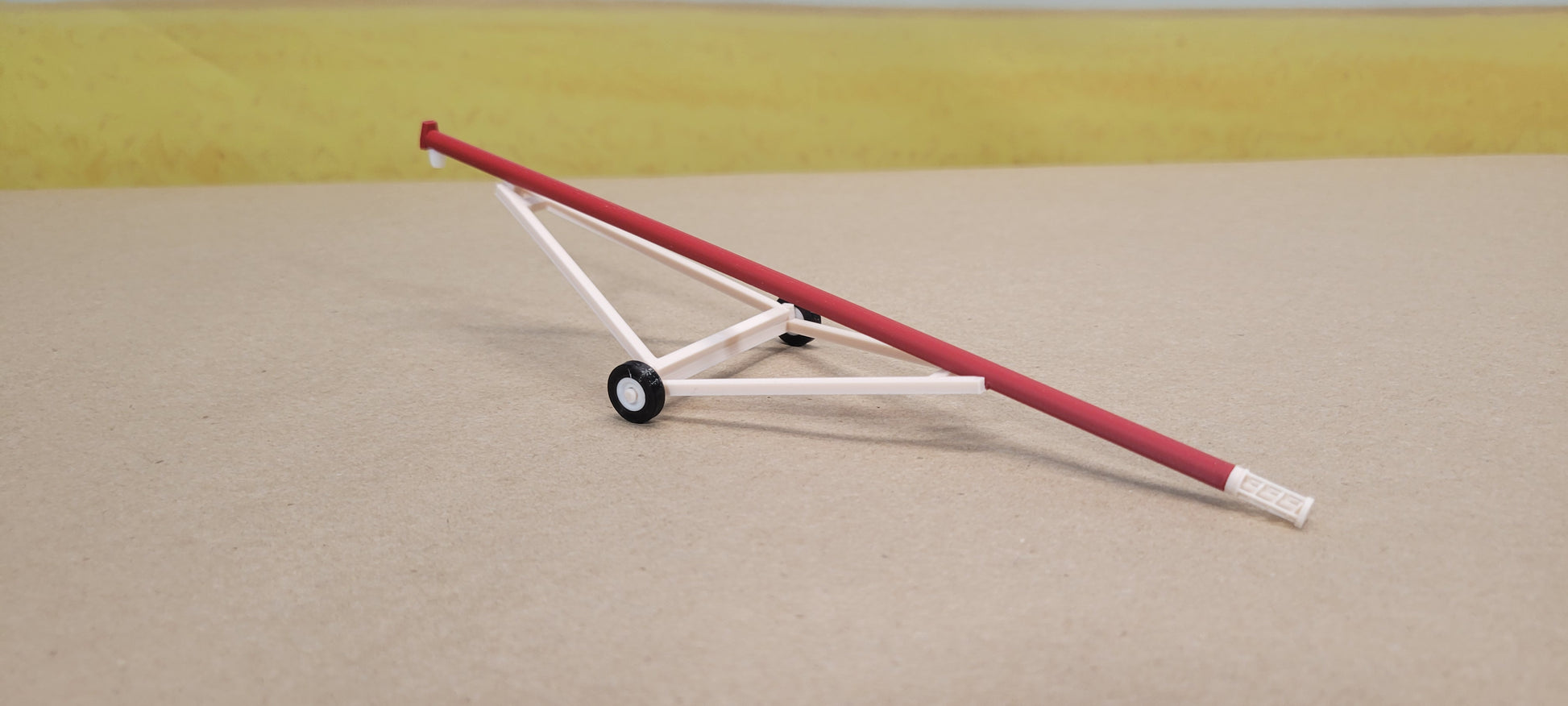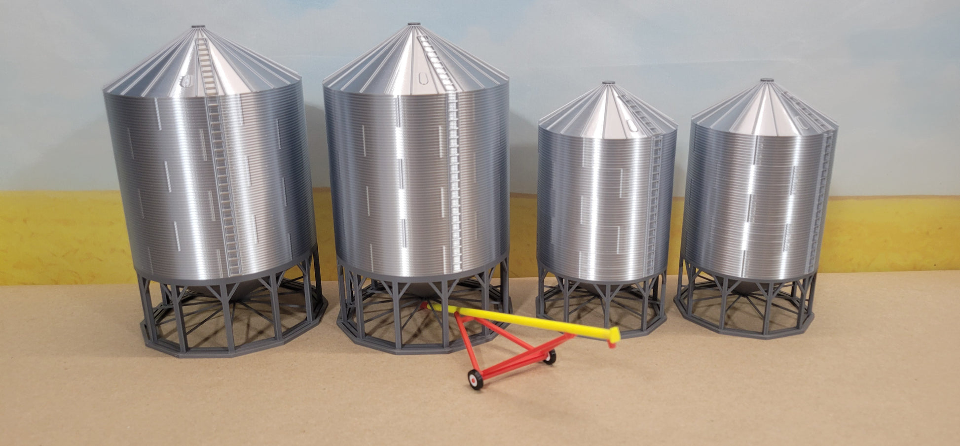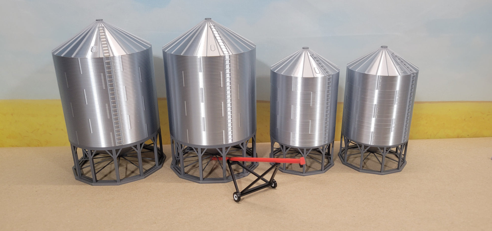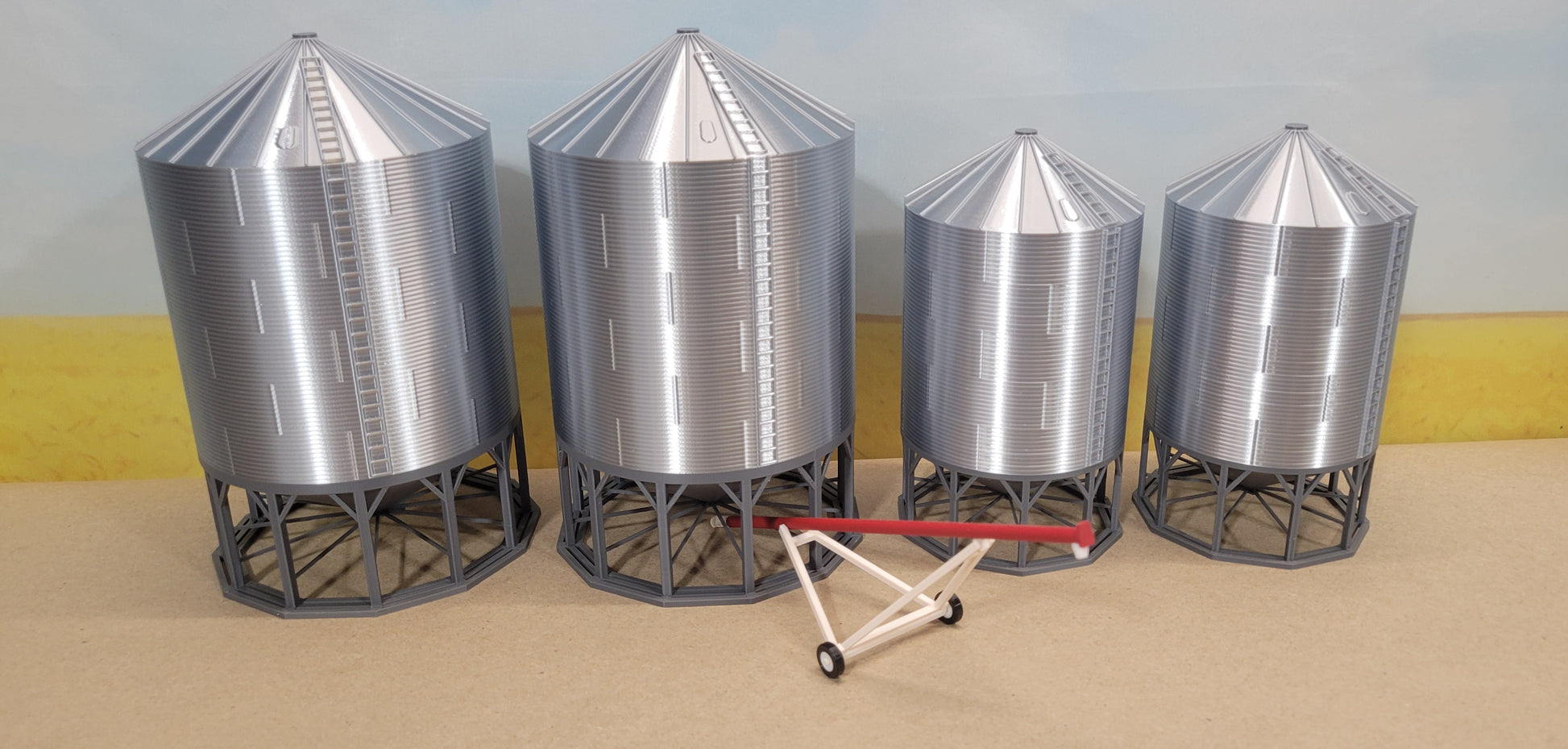 A 1:64 replica of a 10x40 (10" diameter tube with 40' length) truck loadout auger used to empty the grain bins. Auger lifts up and down (and stays at whatever position you select). These augers are 100% manufactured, assembled and tested by myself.