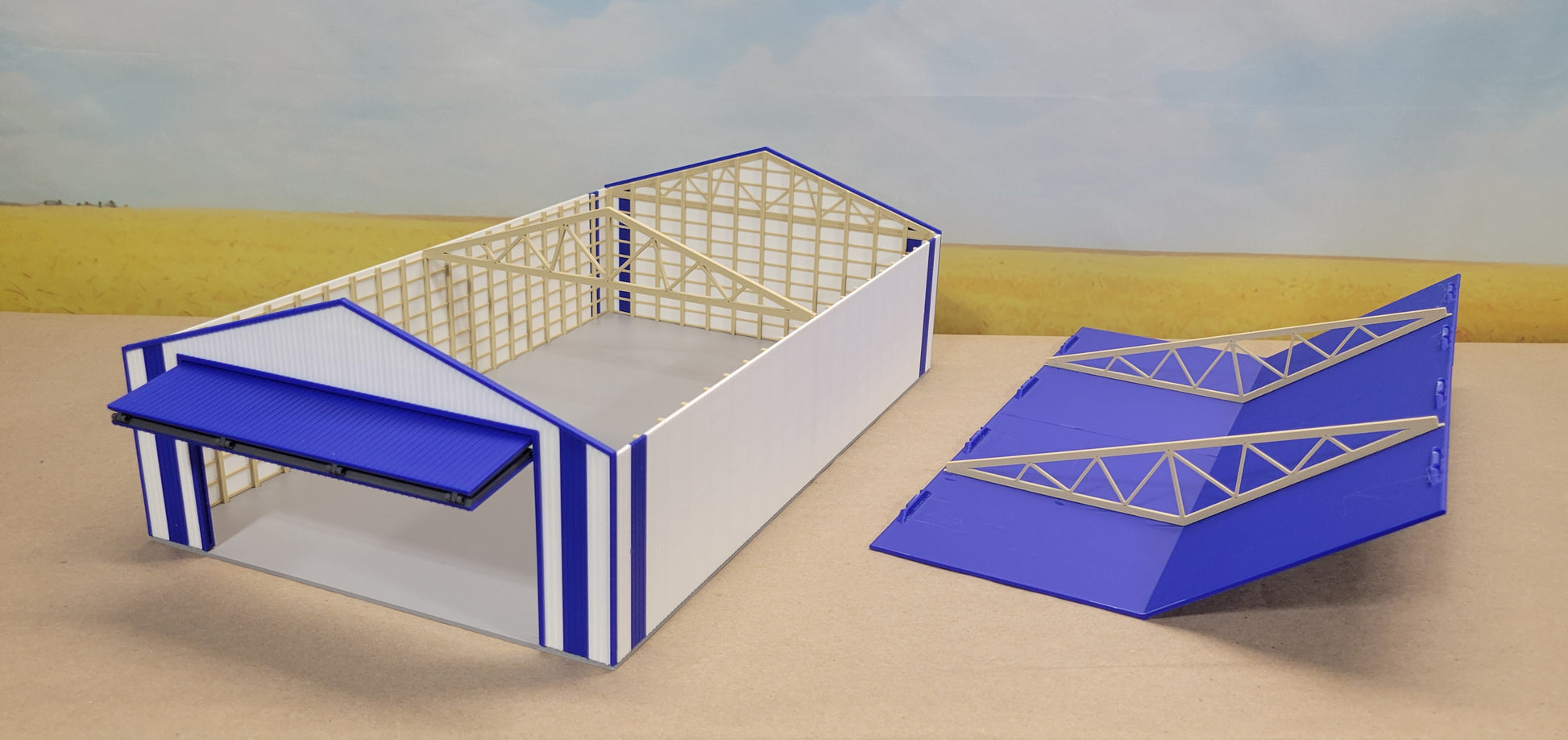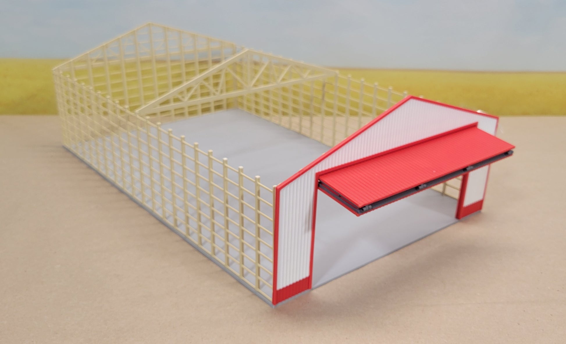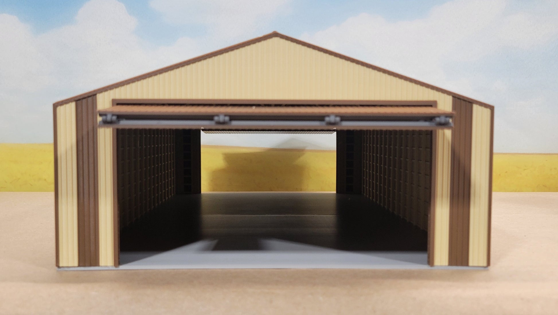 1:64 scale replica of a 50 foot wide straight wall pole shed. This is a highly detailed shed that you will not find anywhere else, especially at this price point. A large amount of time has been invested getting the details done and done right. The bifold door is fully functional and can be added to the back of the shed as well. Every piece to this shed is designed, manufactured and assembled by me.