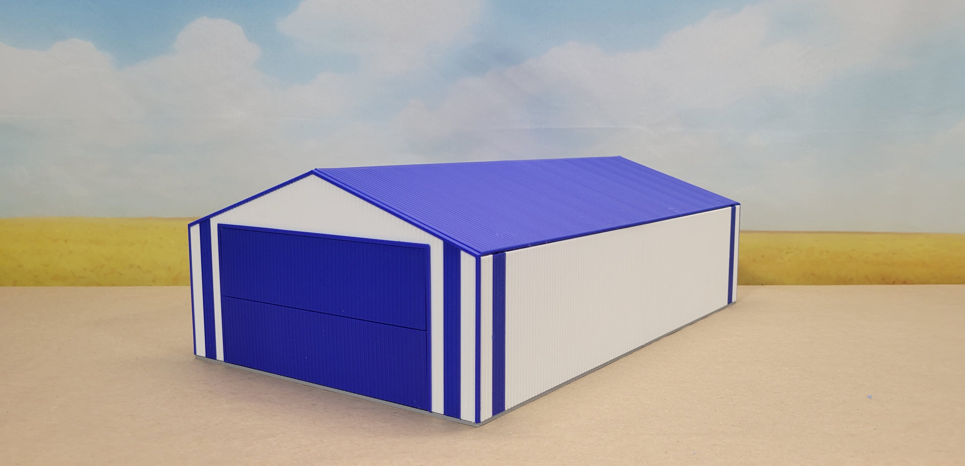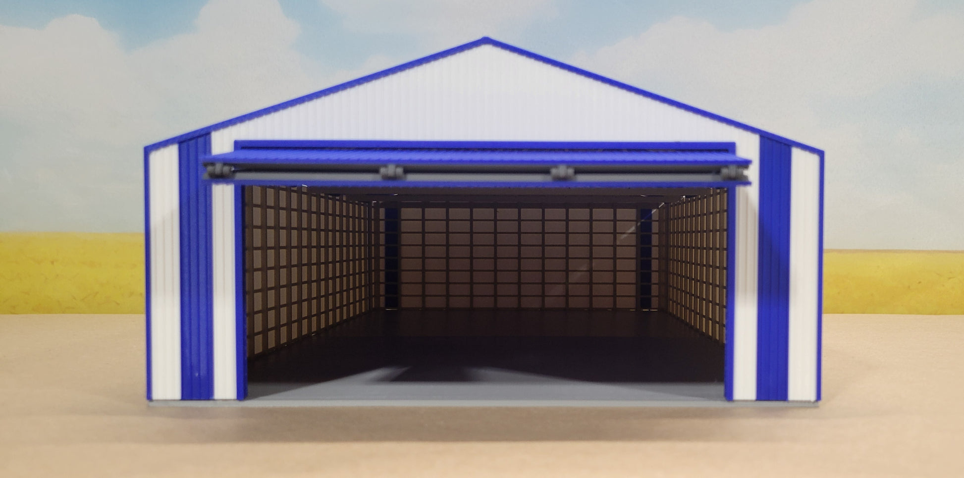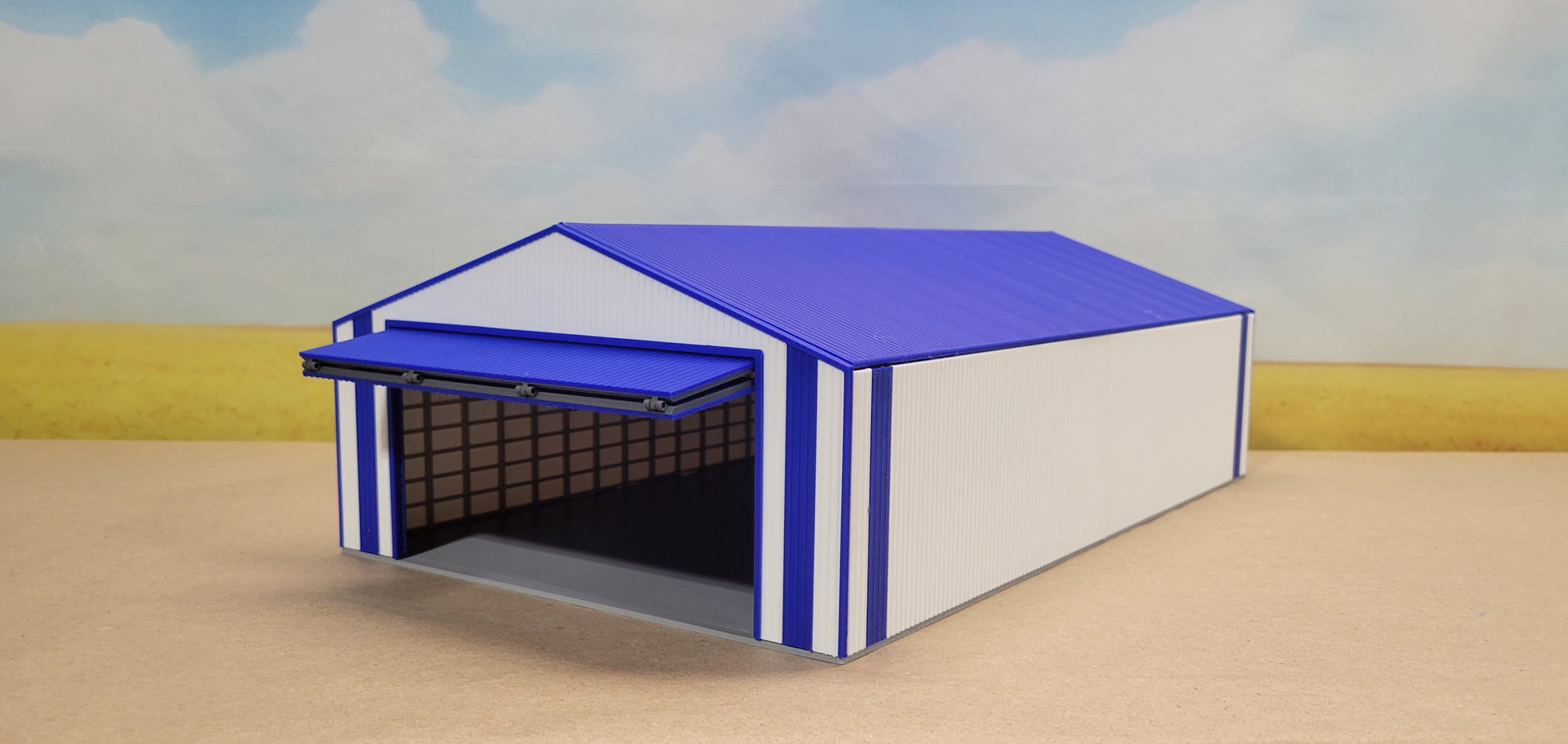 1:64 scale replica of a 50 foot wide straight wall pole shed. This is a highly detailed shed that you will not find anywhere else, especially at this price point. A large amount of time has been invested getting the details done and done right. The bifold door is fully functional and can be added to the back of the shed as well. Every piece to this shed is designed, manufactured and assembled by me.